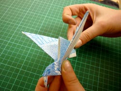 ![]() Fold each of these flaps in on themselves as you did with the head and tail earlier. |